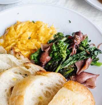 菜の花とホタルイカのガーリックバゲットワンプレート