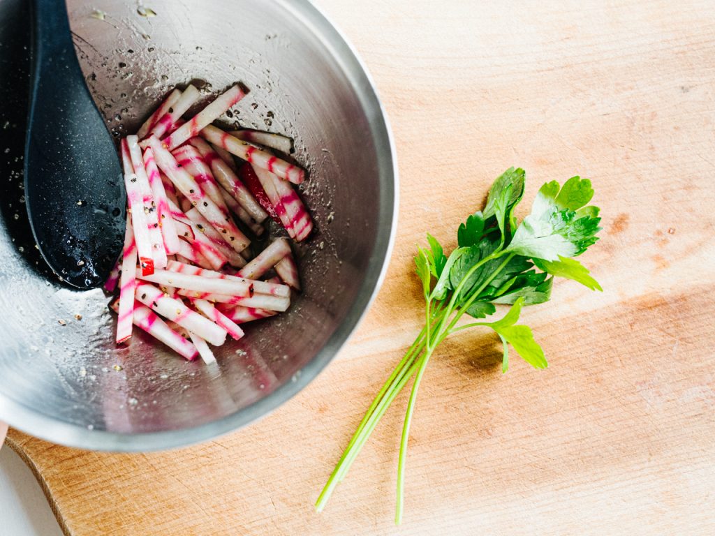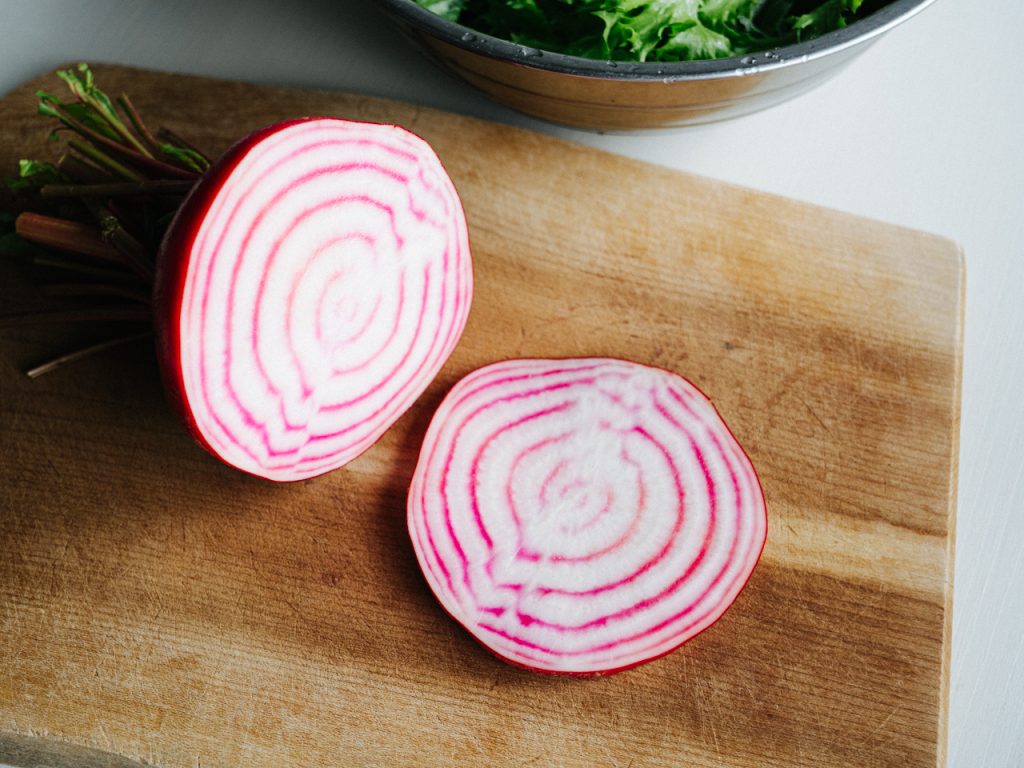 サラダはうずまきビーツとイタリアンパセリをグリーンリーフに混ぜて彩りをプラス。
