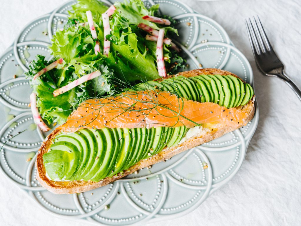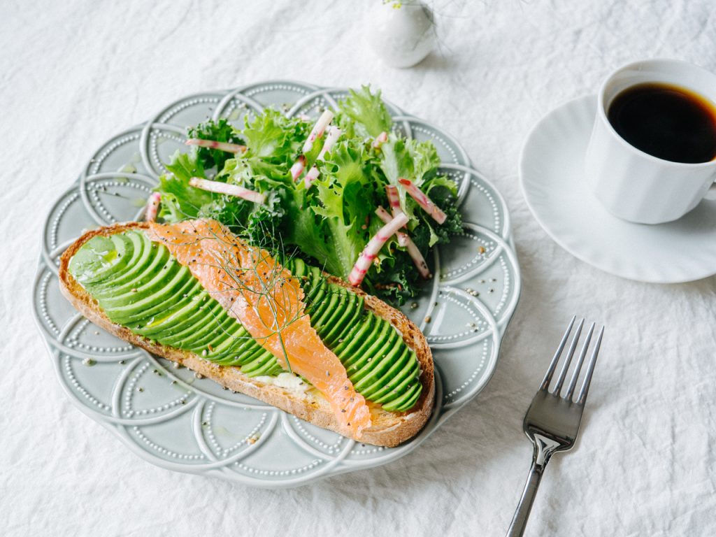 今日の朝ご飯はたっぷりアボカドとサーモンのオープンサンド。