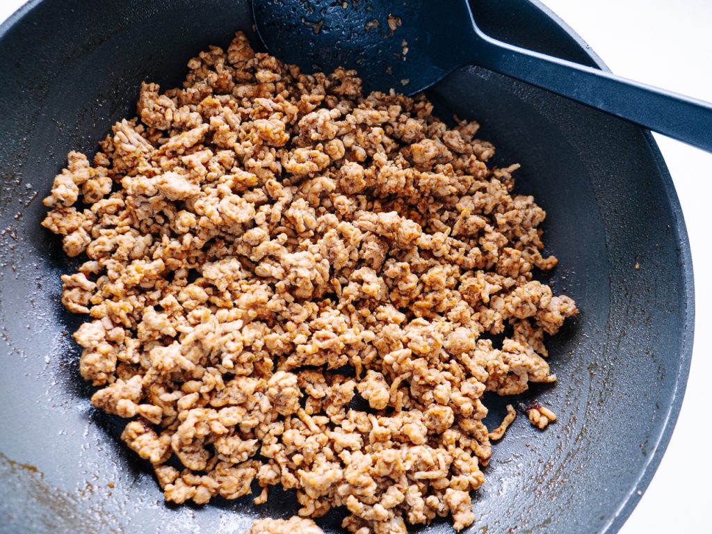 作り置きの野菜がいっぱいあったのでひき肉だけ炒めて簡単に作ります。