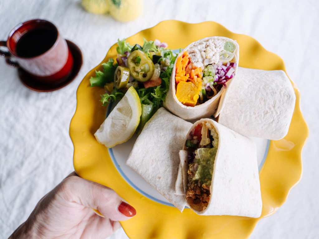 野菜たっぷりチキンと豚ひき肉アボカドのタコス完成!