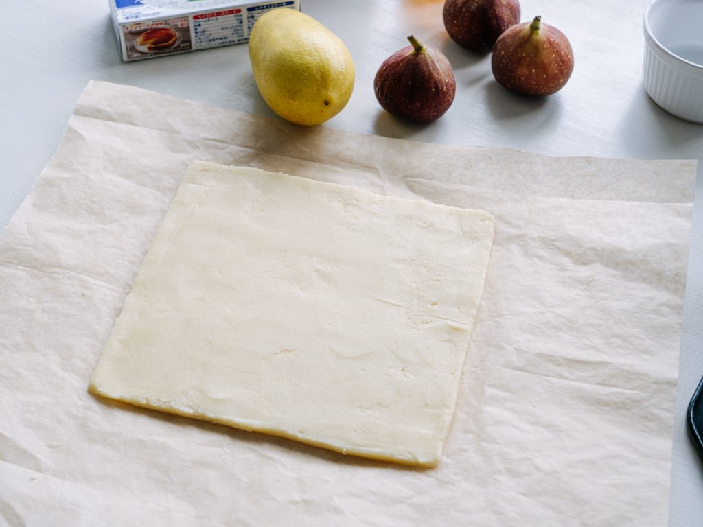 端の部分はあらかじめ半分に切ったいちじくをのせて調整しています。最後の仕上げに、砂糖水を薄く塗って色止め&ツヤ出しをしたら完成🙌