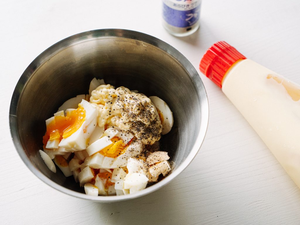 味玉の味が多少ついていたのでマヨは少し控えめにして、胡椒とはちみつをほんの少し加えて味は軽くととのえただけ。