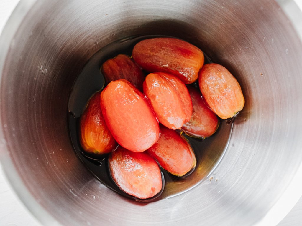 トマトは湯剥きしてからバルサミコ酢とオリーブオイルで和えただけ。