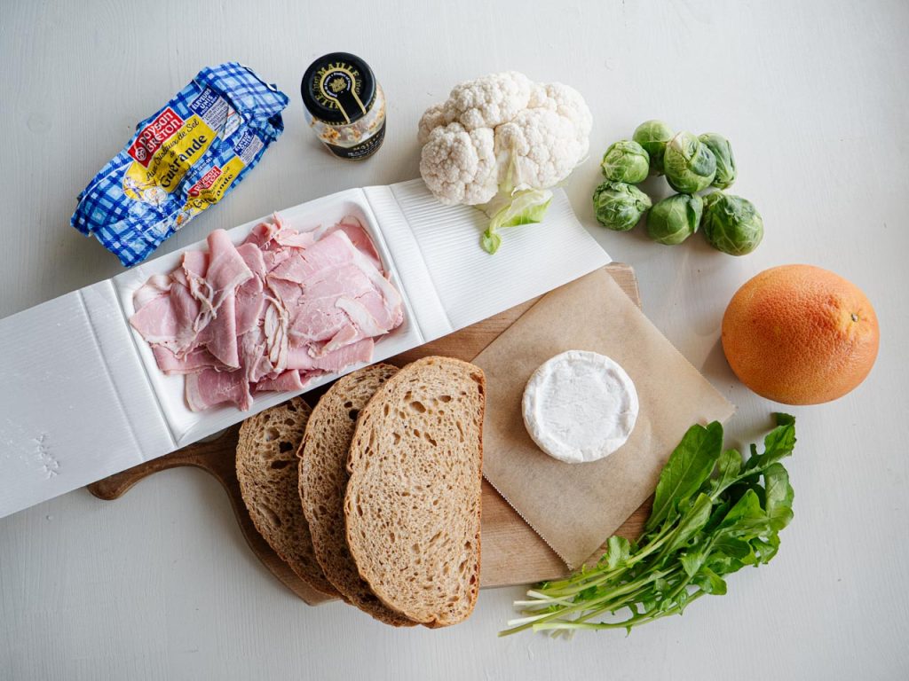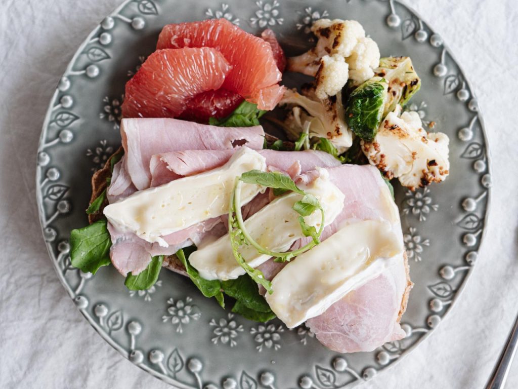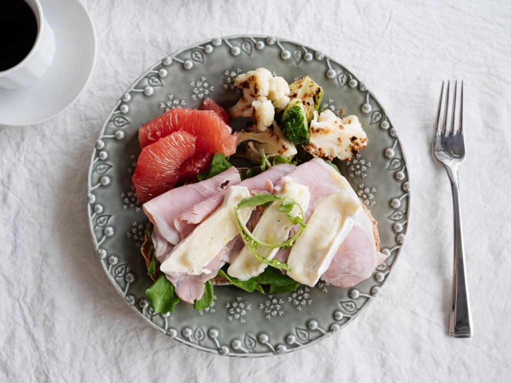 今朝はオープンサンドとローストカリフラワーのマリネを乗せたワンプレート。