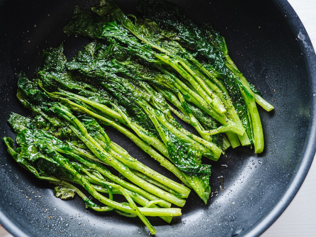 菜花はフライパンに少し水を張って軽く蒸し焼きに。味付けはオリーブオイルと塩コショウだけでOK🧂